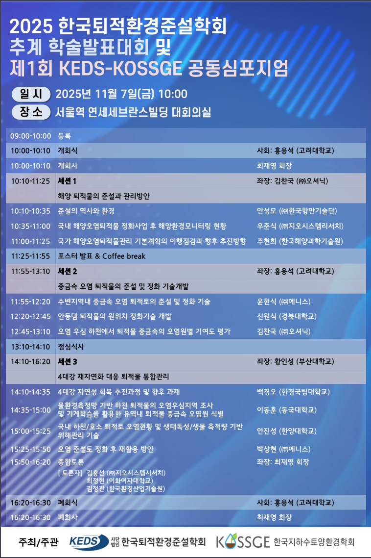 이번 행사는 추계 학술 발표와 더불어 한국지하수토양환경학회와 공동심포지엄을 진행할 예정입니다.